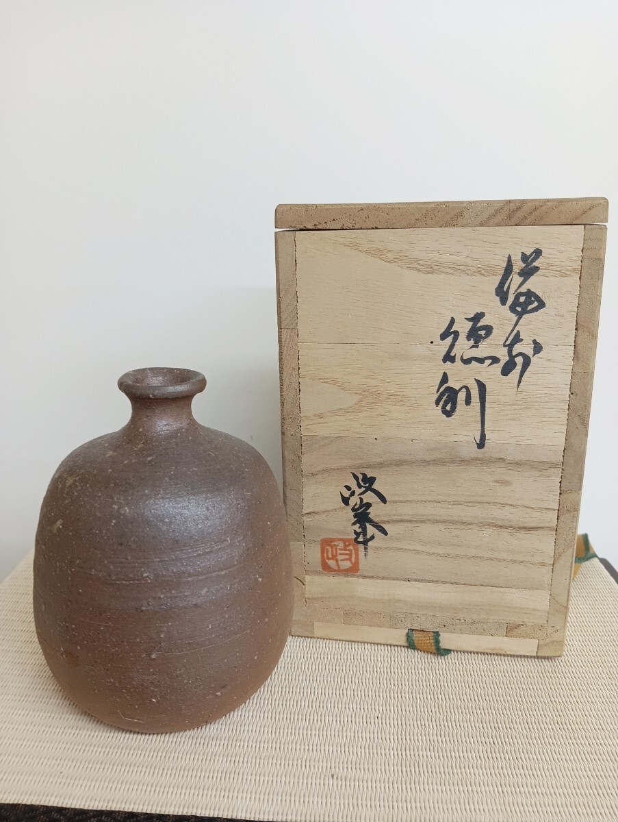 - K-83 備前 岡山県重要無形文化財 各見政峯 徳利 共箱