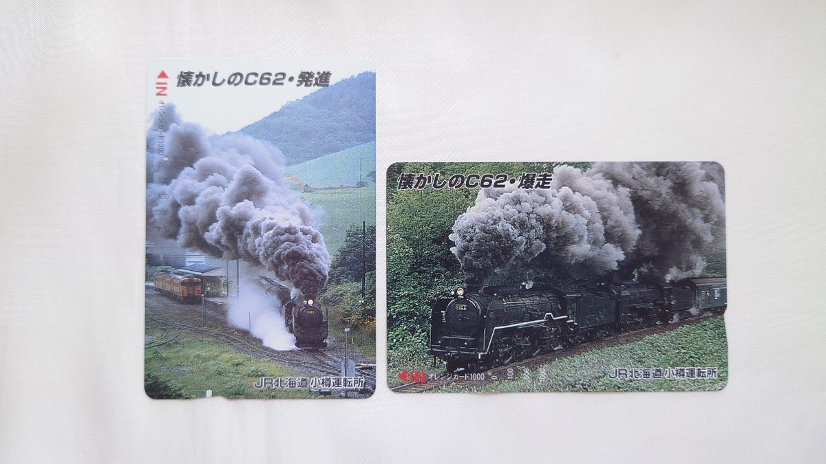 - ●JR北海道小樽運転所●懐かしのC62発進・爆走●記念オレンジカード1穴使用済み2枚一括