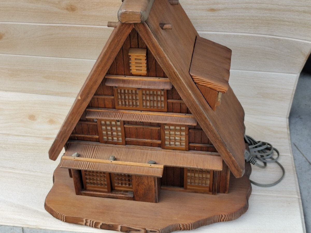 - 特大 当時物!合掌造り!建物!時計 !オルゴール !インテリア!照明!ガレ