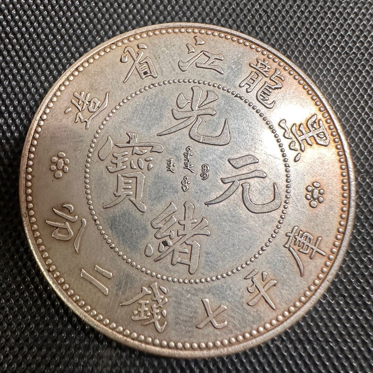 - 中国古銭 希少 大清 黒龍省造 中国銀貨 H23 大型コイン光緒元宝 重さ26.9g 庫平七銭二分