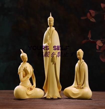 - 木彫り仏像 阿弥陀三尊西方三聖 ◆ 阿弥陀如来・ 観音菩薩 ・勢至菩薩北魏仏教造像 美術品 一刀彫 柘植 守り本尊 禅宗 仏像