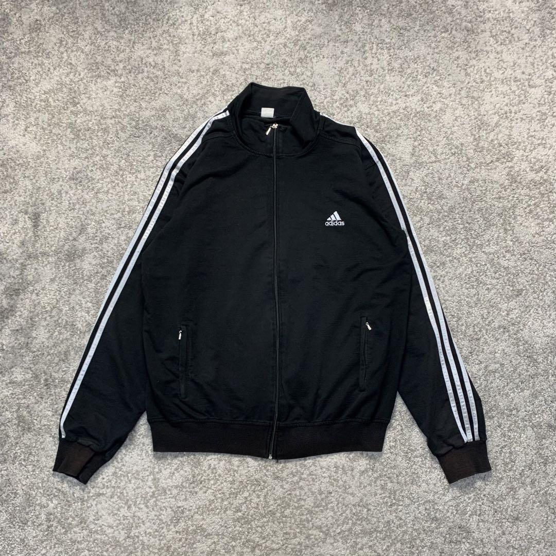 > XL相当 アディダス 黒 トラックジャケット 刺繍ロゴ トラックジャージ