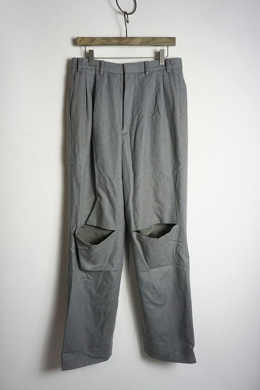 - 希少 正規 FUMIKA UCHIDA フミカ ウチダ 膝オープン カットオフ ウール スラックス パンツ FU-K-PT005 灰 40 本物 603O▲