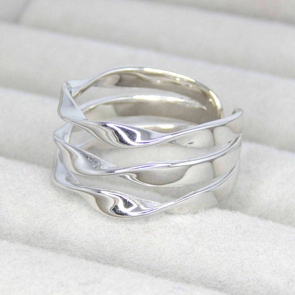- 残り1点★新品★送料無料 3レイヤー風 ひねりデザイン スターリングシルバー925 豪華 希少品 レディースアクセサリー 限定 プラチナ仕上