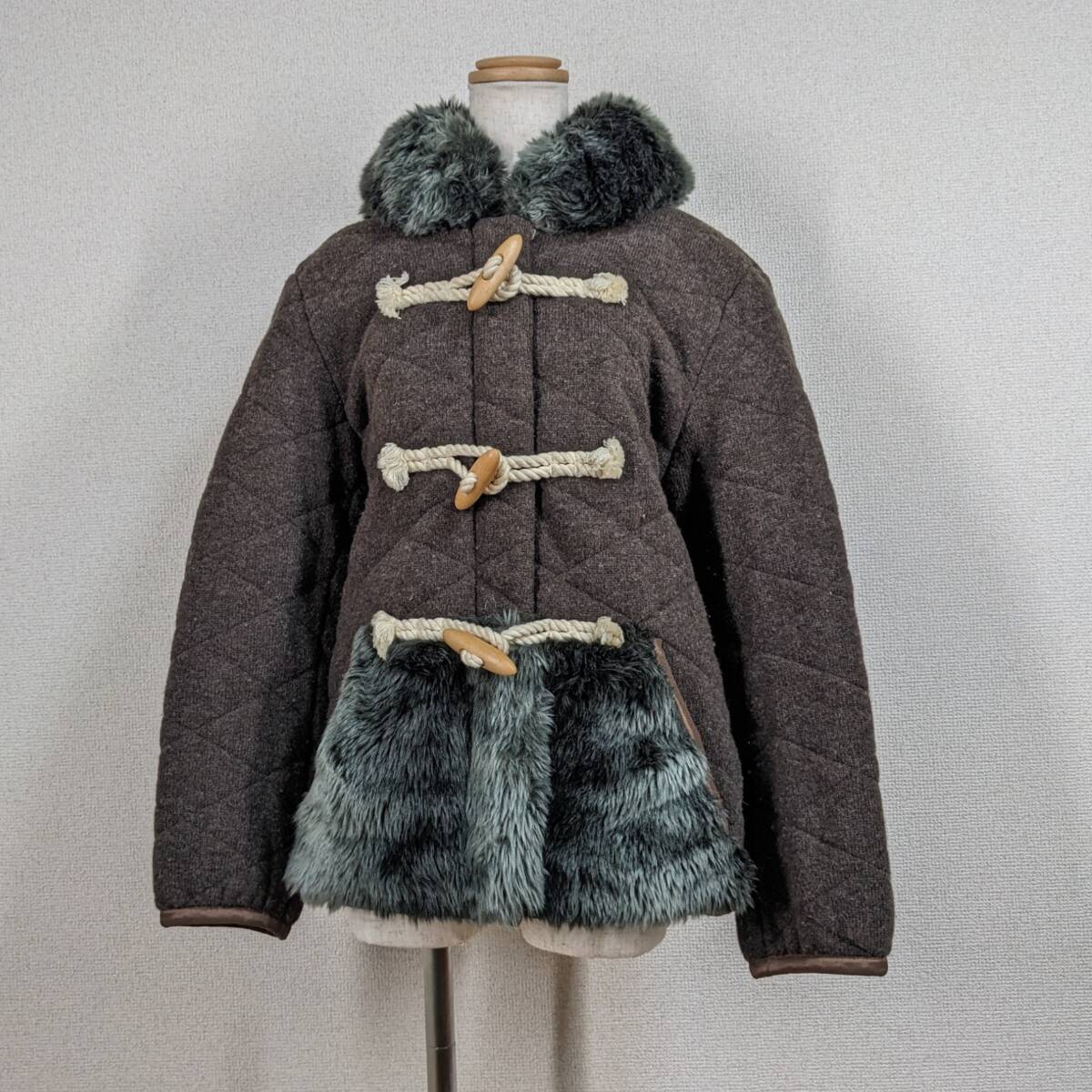 - 【メルシーボークー】ダッフルコート mercibeaucoup アウター ブラウン 1 y2k ファー ウール トグル キルット キルティング