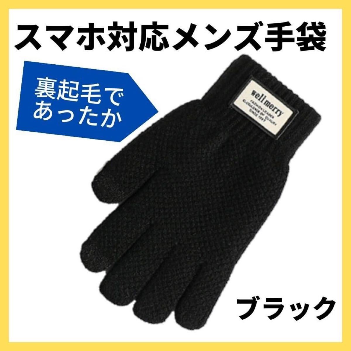 - ラスト1点!メンズ 手袋 スマホ対応 裏起毛 ブラック 保温 防寒 オシャレ プレゼント