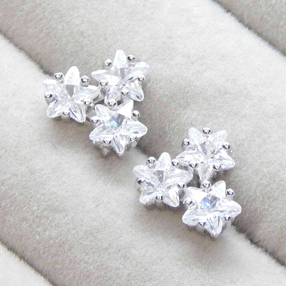 > 新品★送料無料 星型 3連CZダイヤモンドピアス シルバー925 プラチナ仕上 キュービックジルコニア レディースアクセサリー イヤリング化可