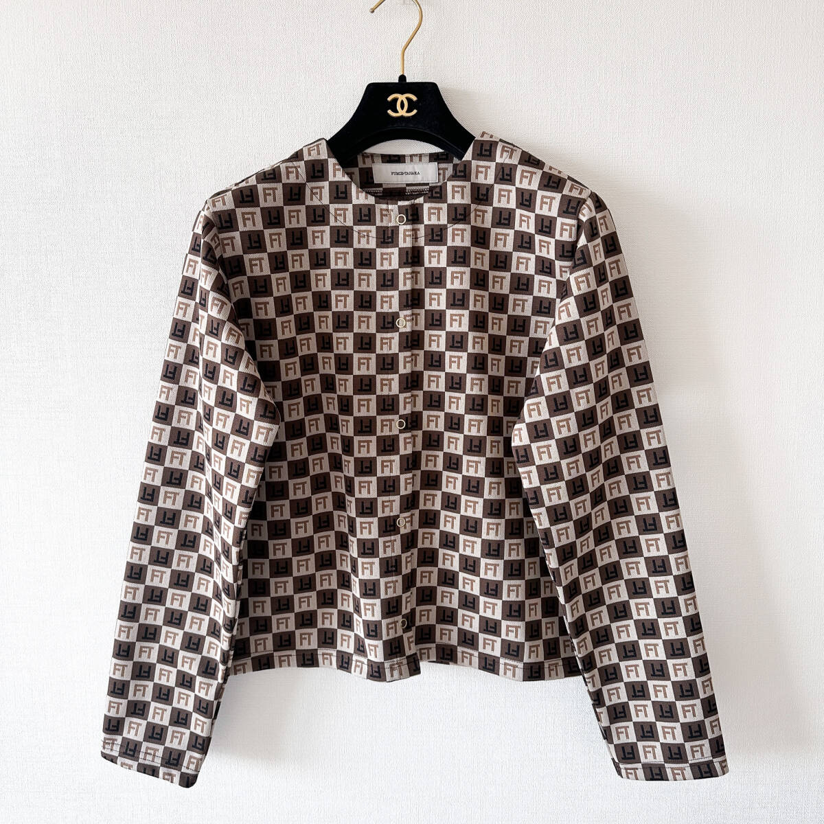 > 【極美品】FUMIE=TANAKA フミエタナカ / ジャガード モノグラム ジャケット ノーカラー 総柄 2023AW FT柄