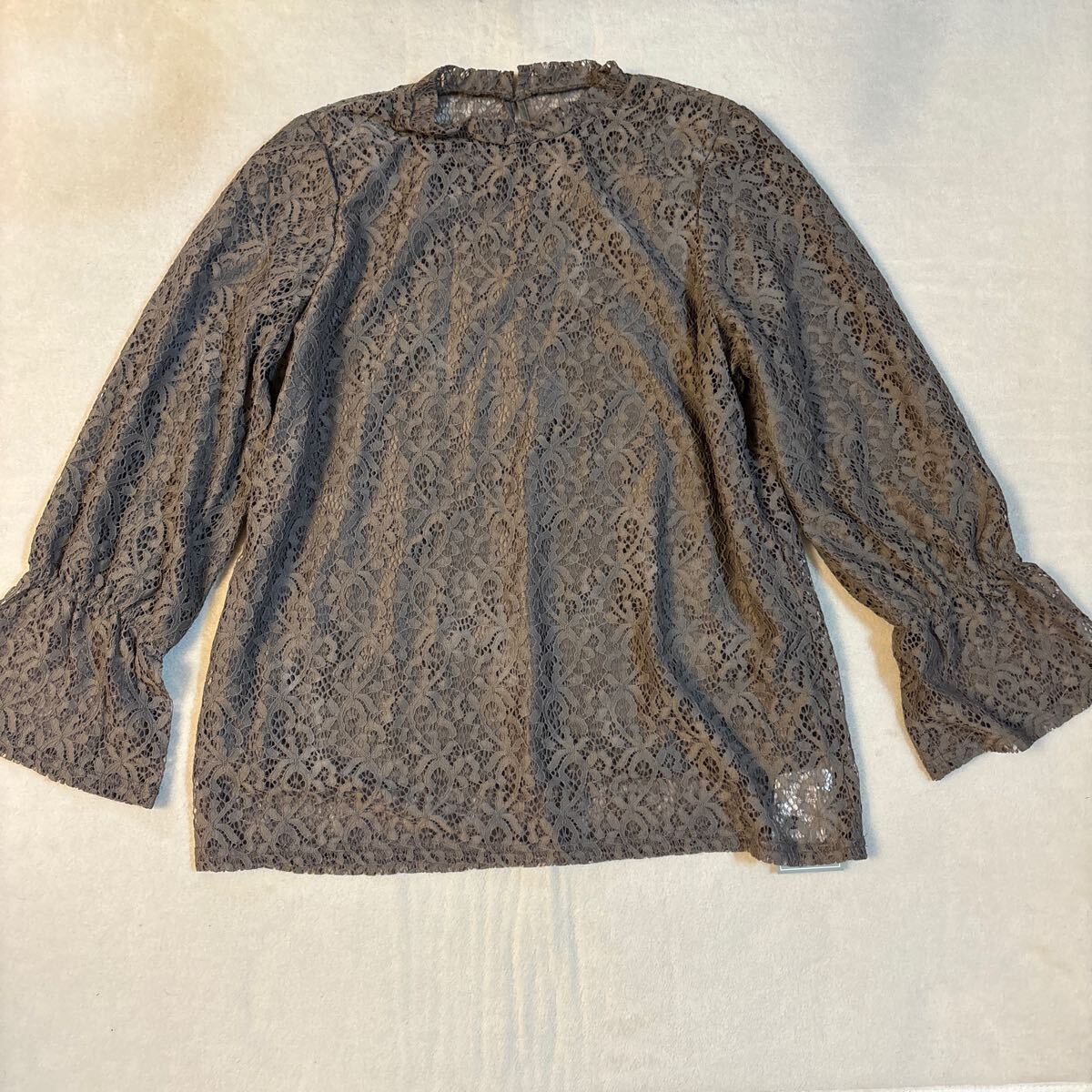 > ☆ 新品、未使用、タグ付きSILVERMINT SUGARレース トップス ブラウス ショップチャンネル 長袖 トップス ブラウン L