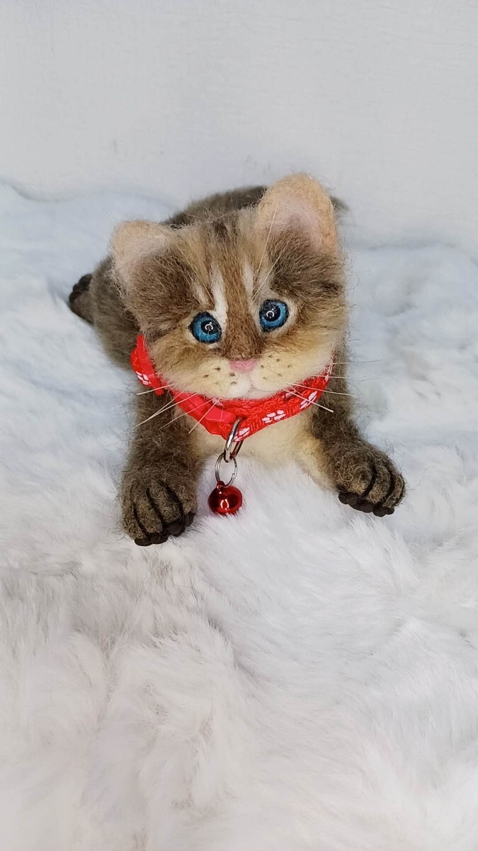 - ++nannan++ 羊毛フェルト 猫 ブルーゴールドブリティッシュショートヘア ハンドメイド