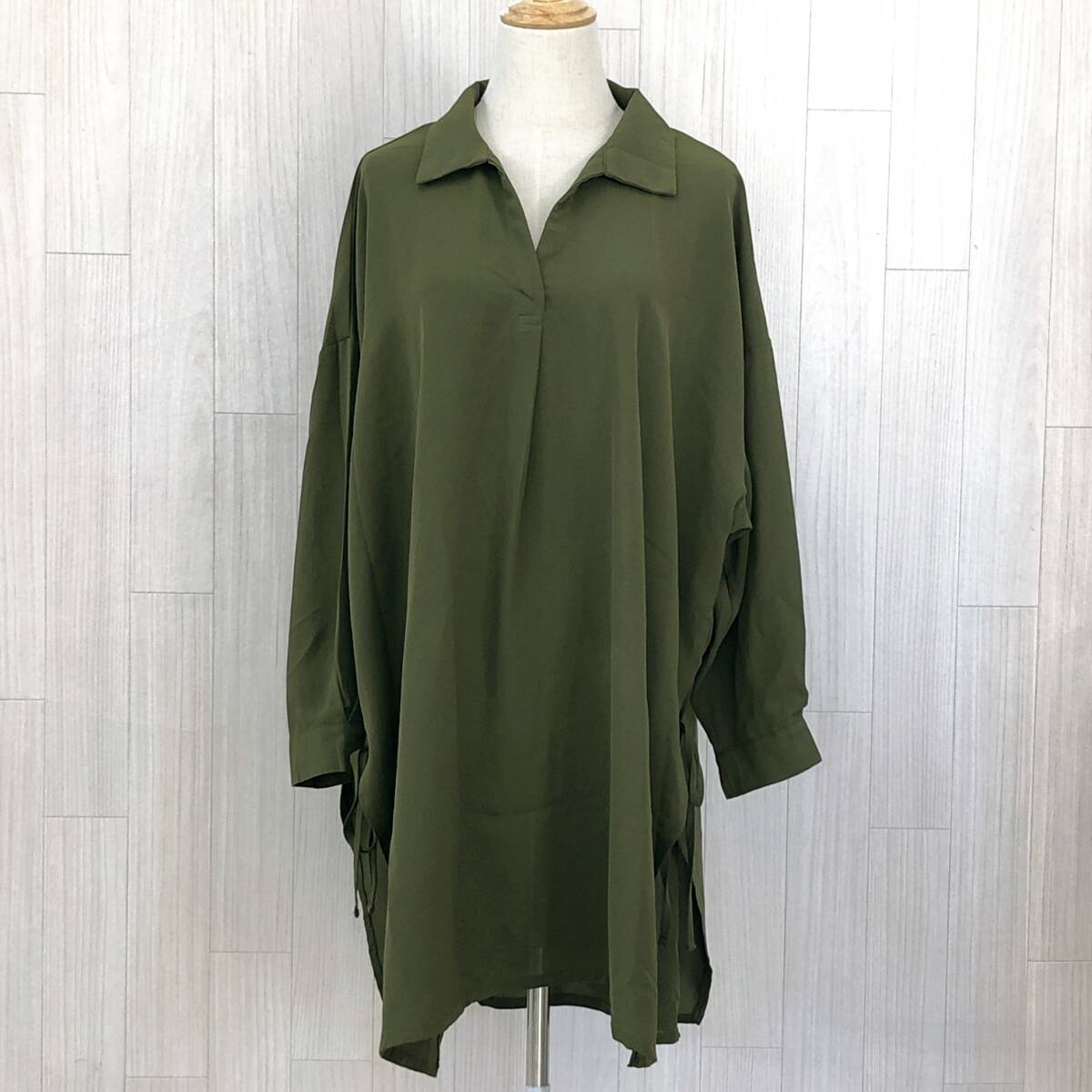 - YX1088 美品 Lax Dan Tia レディース トップス 長袖 薄手 スリット サイズL カーキ フェミニン クール カジュアル おしゃれ 春秋