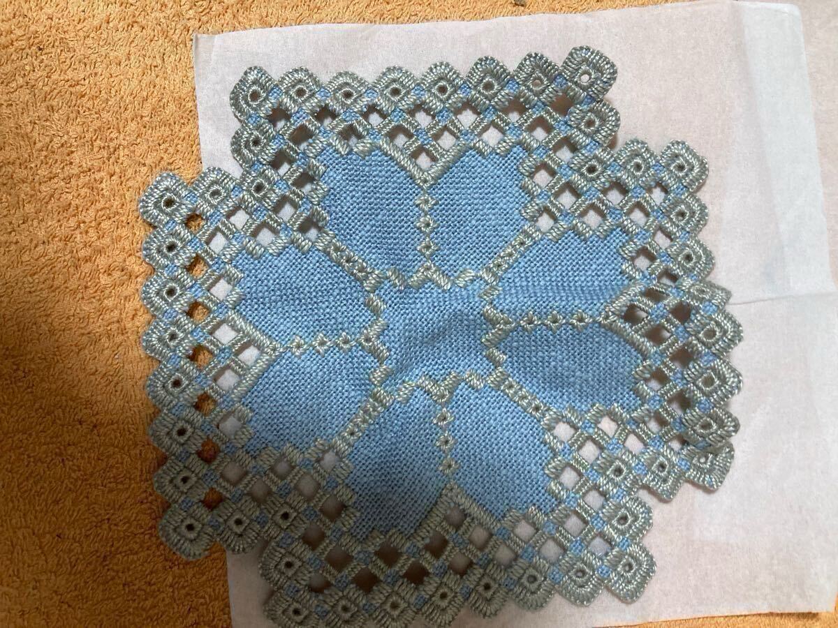 - アンティーク?骨董品?ハンドメイド?布製?刺繍?敷き物?コースター?汚れ、折れ目あり です。