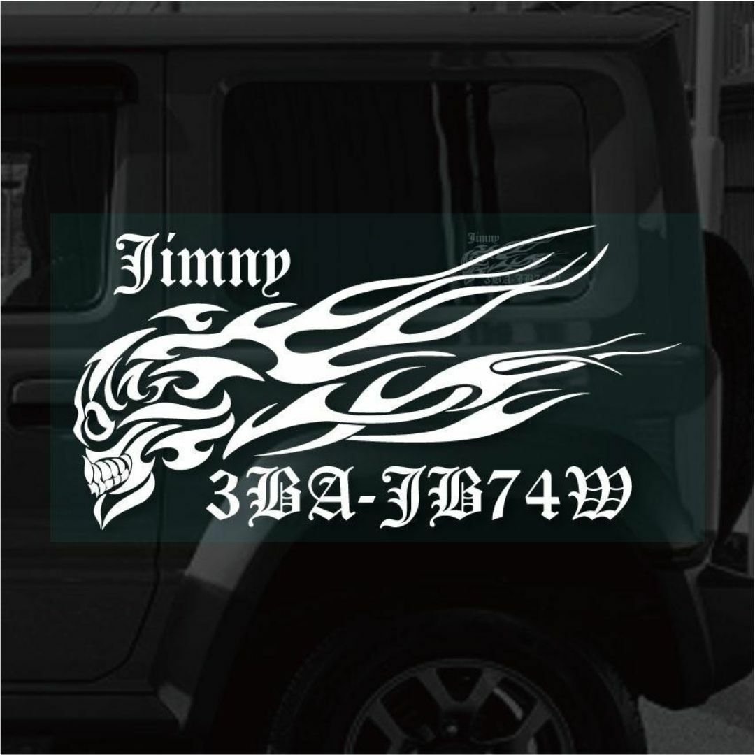 - スズキ ジムニーシエラ 型式 3BA-JB74W 左向き ドクロ カッティングステッカー 転写シール 白色