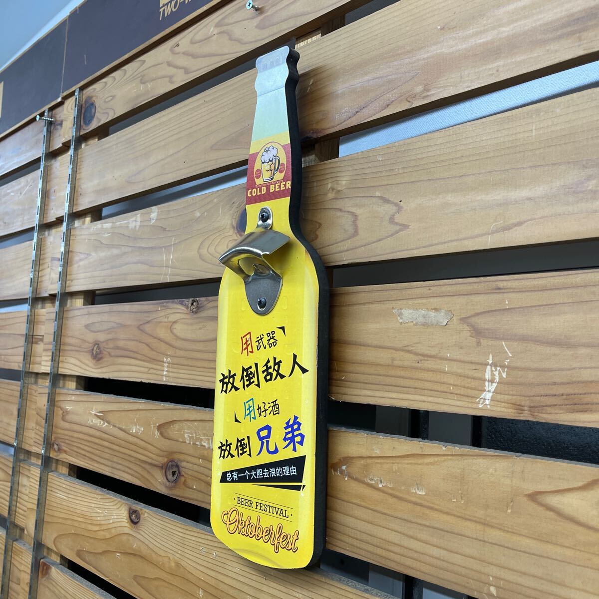- 壁掛け ボトルオープナー 栓抜き ビール瓶 おしゃれ 中国語 居酒屋 バー 店舗什器 インテリア 木製 ビンテージ調 管C-6