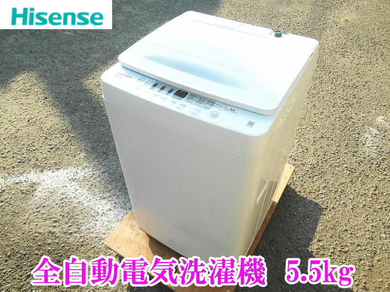 > 〇 Hisense ハイセンス 全自動電気洗濯機 HW-55E2W 5.5kg 洗濯機 全自動 98L 立体シャワー水流 2023年製 ステンレス 家電 洗濯 No.4433