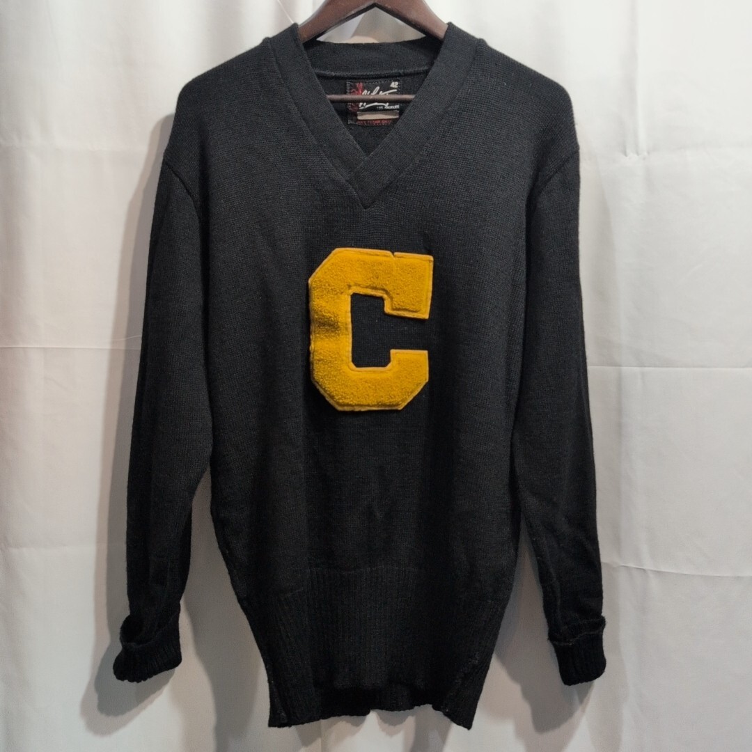 > 50s Vintage USA製 Whiting レタード ニット アワード セーター 42 メンズ M相当 ブラック 黒 長袖 Vネック アメカジ ワッペン ビンテージ