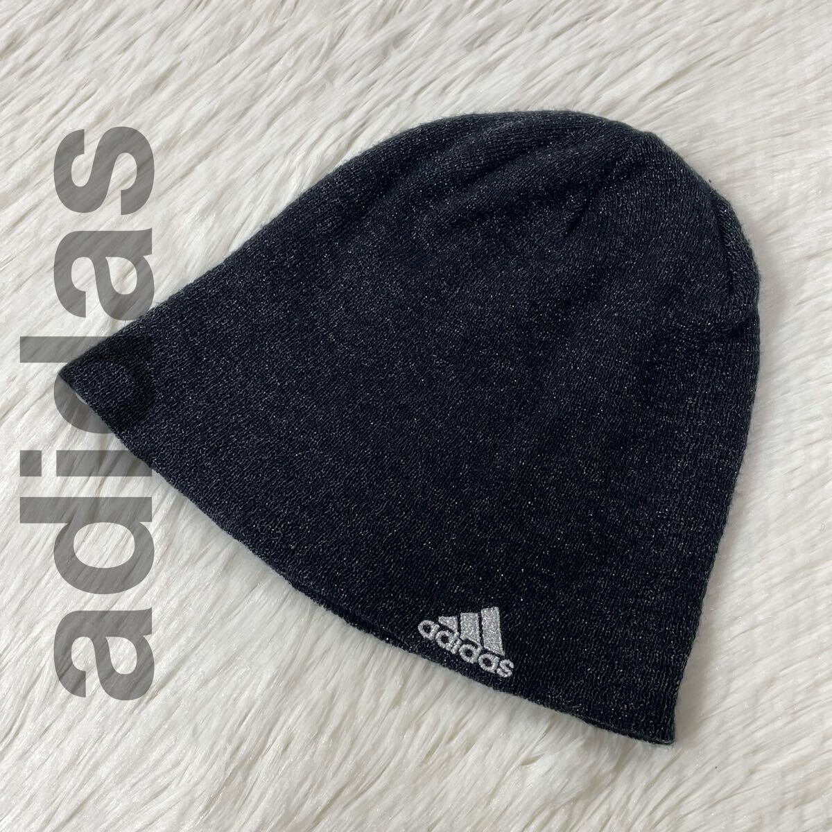 - adidas アディダス パフォーマンス ロゴ 刺繍 ラメ ニット帽 帽子 ブラック CP072