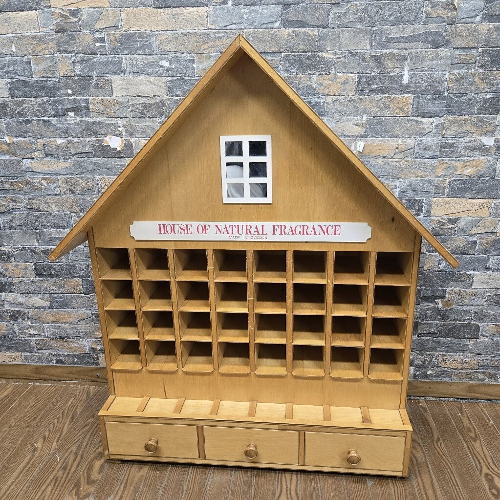 > ★☆5a065 カントリー 木製 ハウス型 陳列棚 ディスプレイケース 家型 収納 小物 引き出し 香水 サシェ 指人形 フィギュアなど☆★