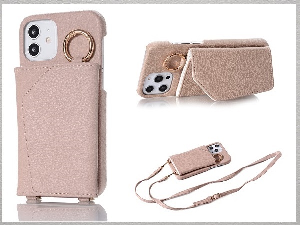 - Smoony iPhone12 ケース iphone12pro ケース 手帳型ケース ショルダー付 アプリコットピンク 新品 鏡付 財布型 スタンド機能 PUレザー