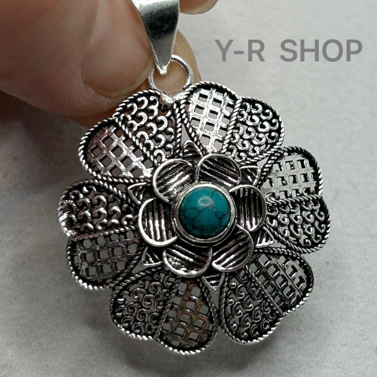 - 天然石★ターコイズのアンティーク調ペンダントトップ ★レディースネックレスシルバー925刻印エスニックアジアン雑貨新品宝石