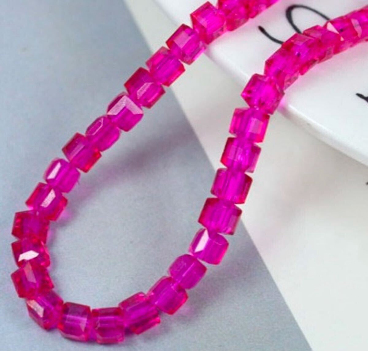 - 4mm キューブ型ビーズ 四角 スクエア クリスタルガラスビーズ 素材濃いピンク