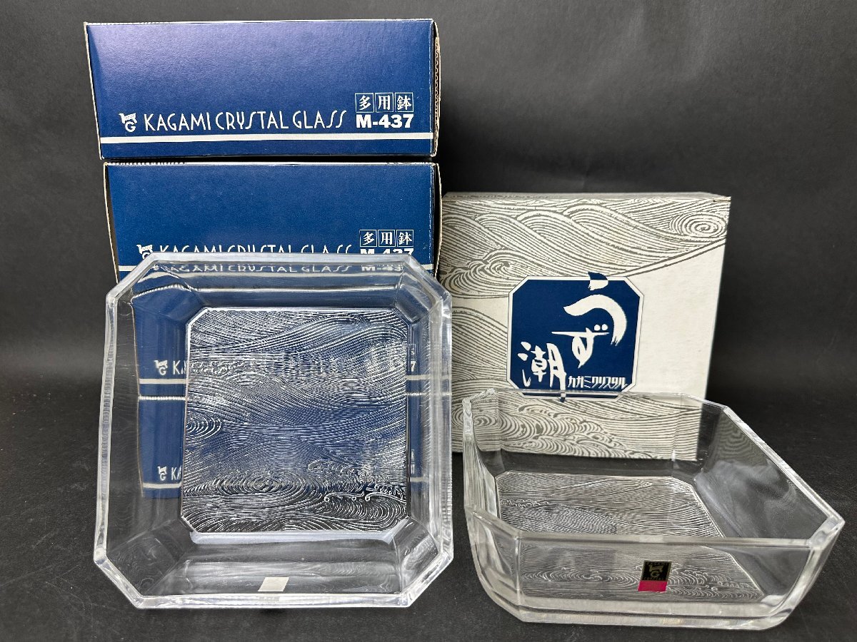 - Y280『新品未使用』カガミクリスタル うず潮 多用鉢揃 5皿セット KAGAMI CRYSTAL 角皿 ガラス皿 日本製 クリスタルガラス M-437