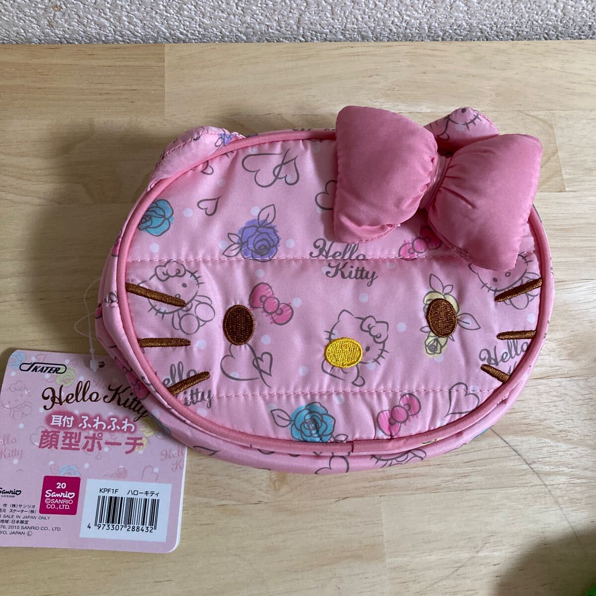 - A☆キティ☆ふわふわ顔型ポーチ☆未使用☆タグ付☆