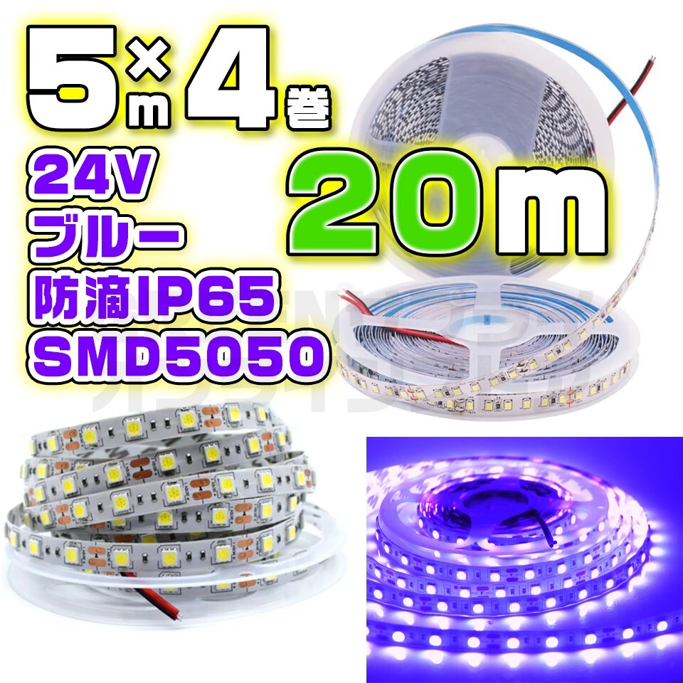 - 24V LED テープライト 20m ブルー 防水 60LED SMD5050
