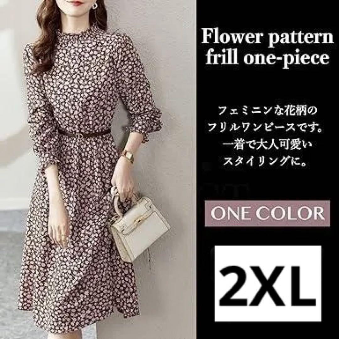 - ワンピース レディース ベルト付き 花柄 2XL フリル ひざ丈 入学式 卒業式