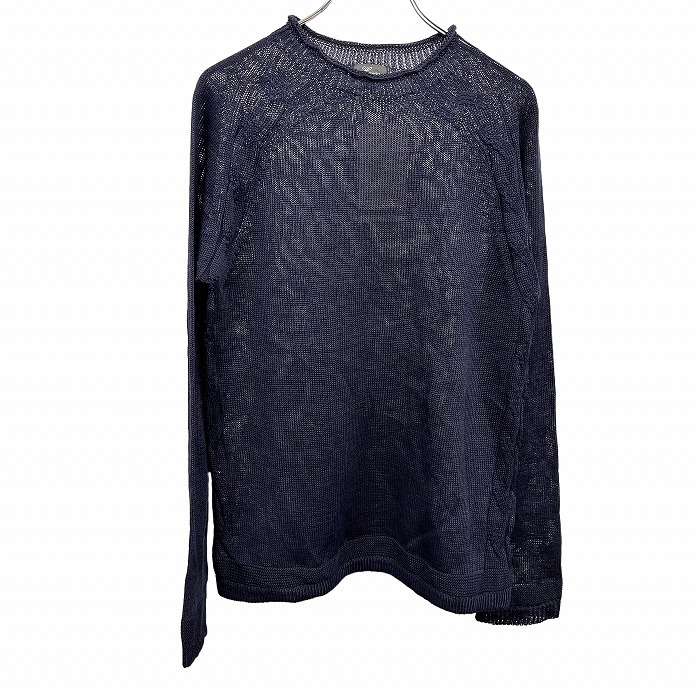 > ハリス 【新品】Harriss ホールガーメント ニット 透け感 モックネック 一部ケーブル ラグラン 長袖 綿100% 38 ネイビー 紺 レディース