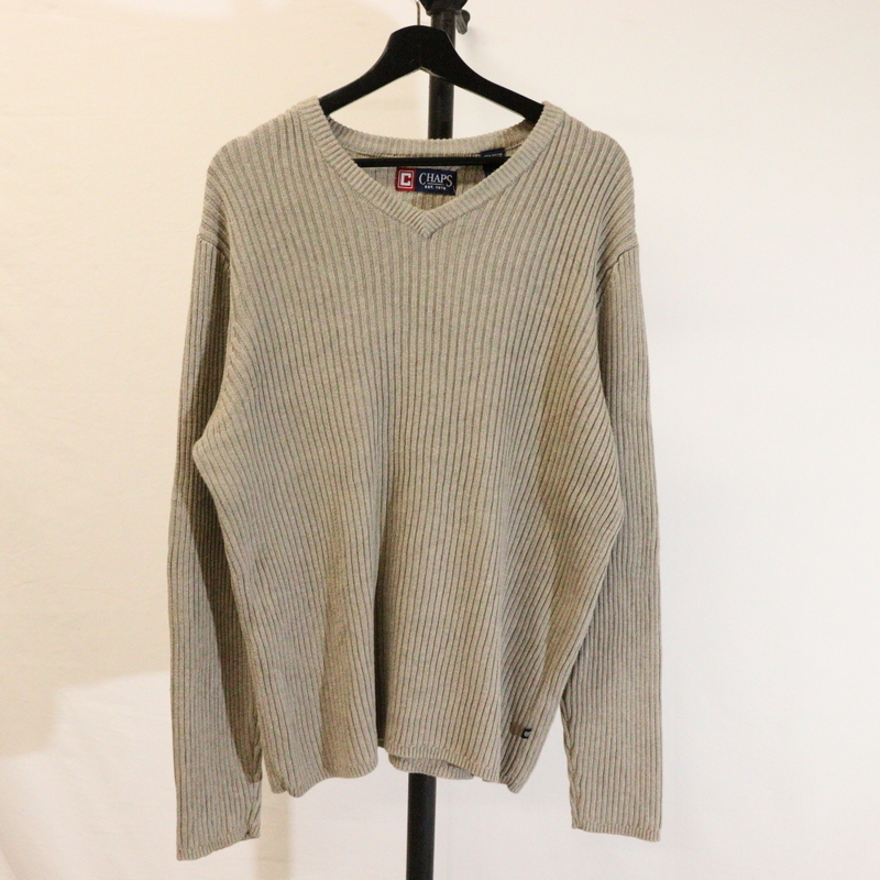 > M180 2000年代製 CHAPS チャップス コットンニットセーター■00s 表記Mサイズ ベージュ Vネック 古着 古着卸 激安 希少 オールド 90s 80s