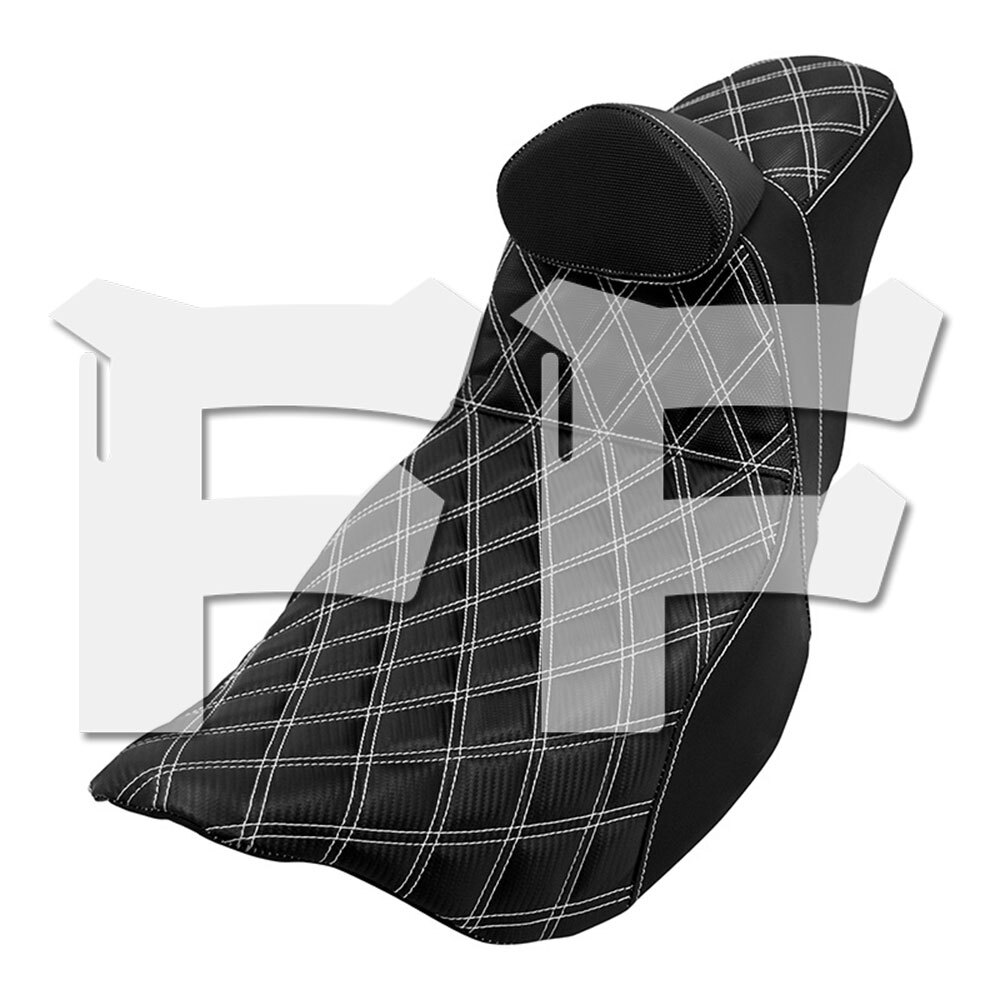 > ハーレー ツーリング ツーアップシート タンデムシート ピリオンシート エレクトラ 一体型 運転席 助手席 カスタム パーツ ホワイト糸