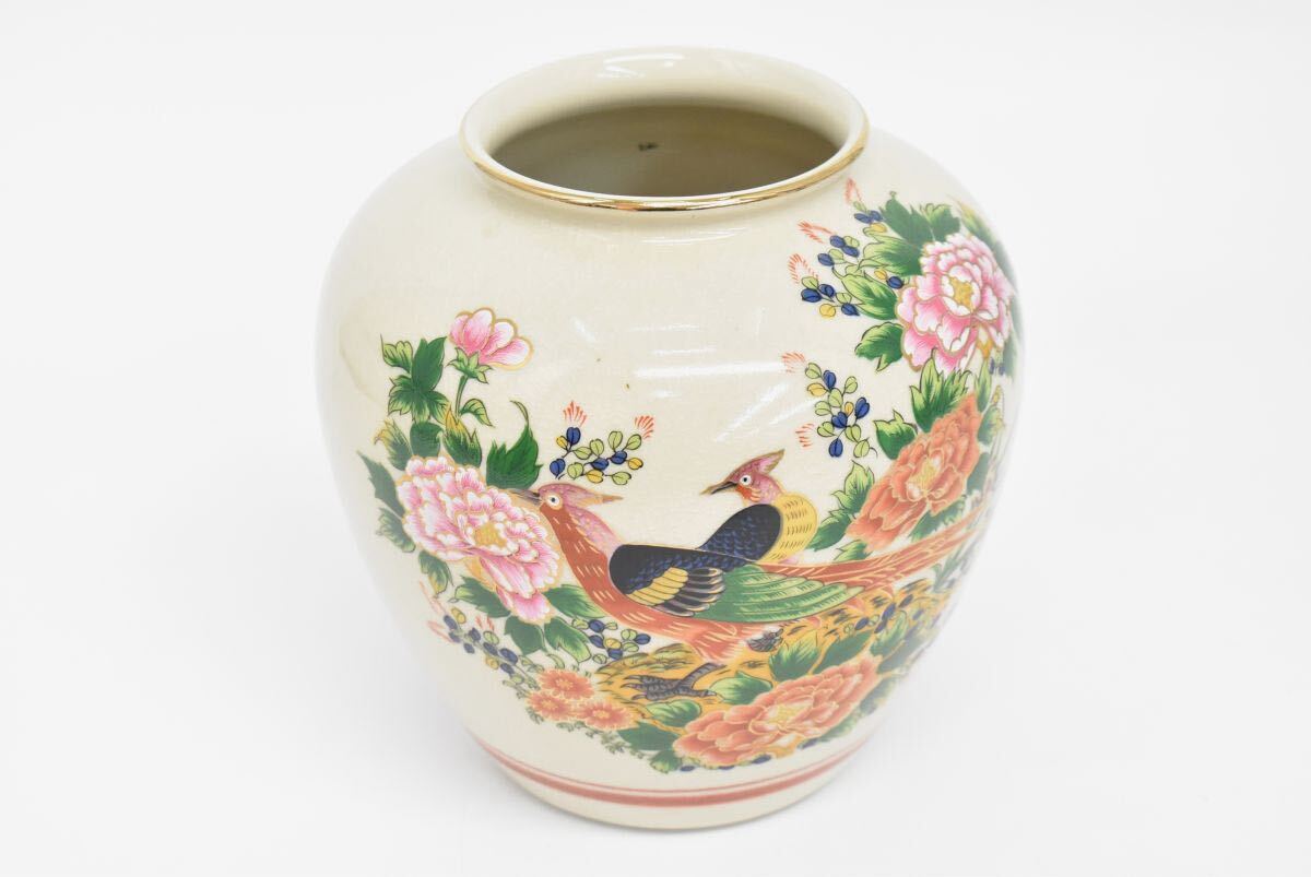 > 九谷焼 満月 花瓶 花鳥図 金彩 花生 花入 飾壷 花器 置物 オブジェ 伝統工芸高さ約20cm 幅約15.5cm