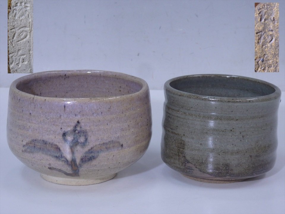 > ★どちらも同じ銘です【抹茶碗2点】ピンクベージュ:直径13×高さ8.7cm 茂阿弥? 茶道具 茶器 セール!