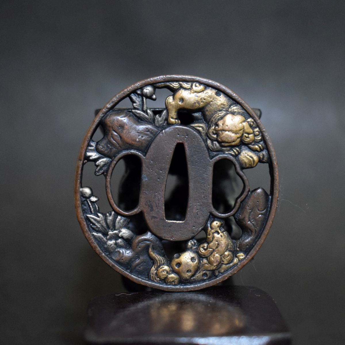 - 刀鍔 獅子 刀装具 日本刀 小太刀 小道具 鍔 【h-250】