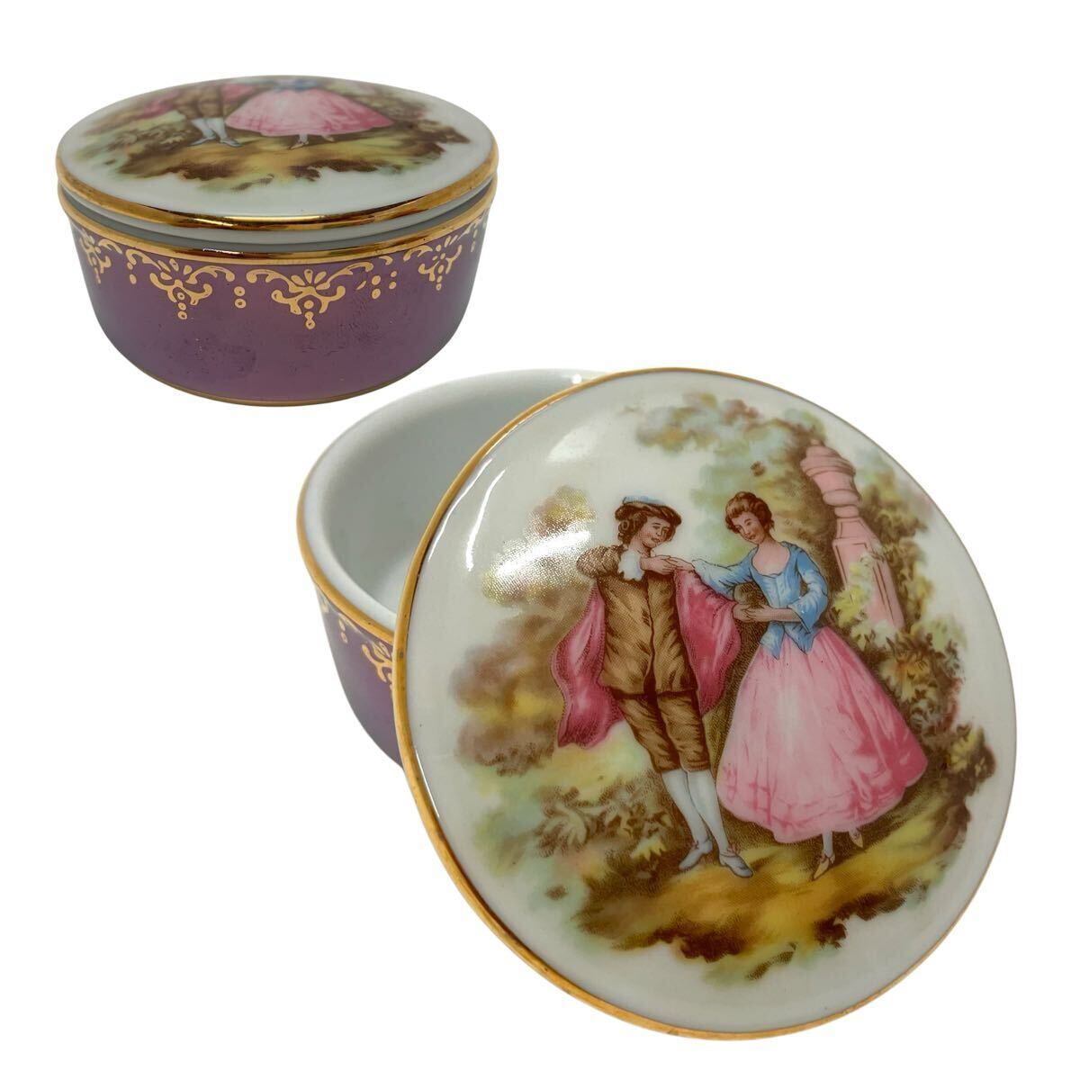 - アンティーク 陶器製 色絵 小さな小物入れ アクセサリーケース 昭和レトロ 管L-119