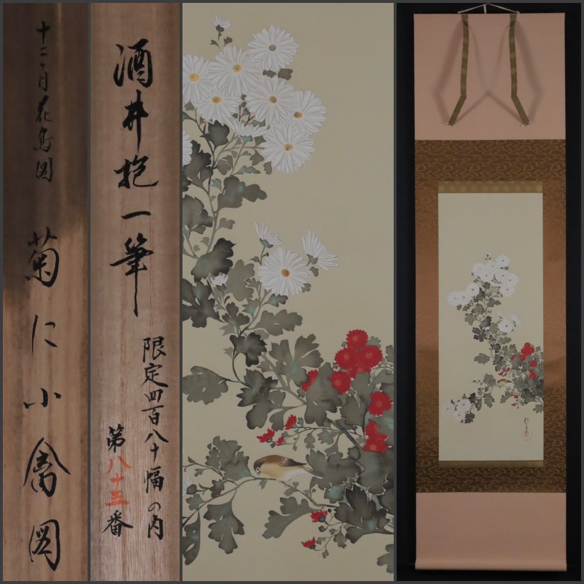> 【工芸印刷】吉】11871 酒井抱一 限定480部 菊に小禽図 太巻 共箱 江戸琳派の祖 尾形光琳師事 茶掛け 茶道具 掛軸 掛け軸 骨董品
