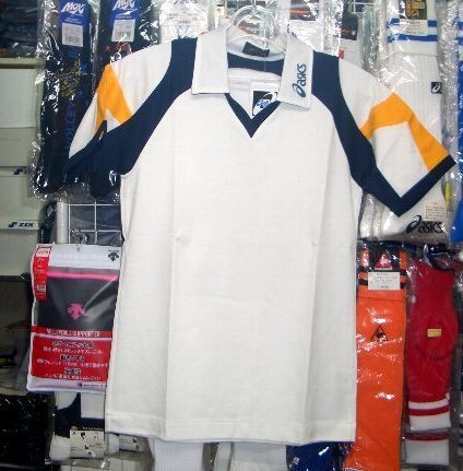 > バレーボール アシックス XW1229 asics 半袖ゲームシャツ 白×紺 ホワイト×ネイビー Oサイズ 大きいサイズ asics 新品 レトロ 即決/