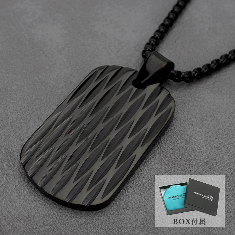 - シンプル ドッグタグネックレス 刀痕 模様 メンズネックレス ブラック 黒 プレートネックレス チェーン付き 専用BOX付属