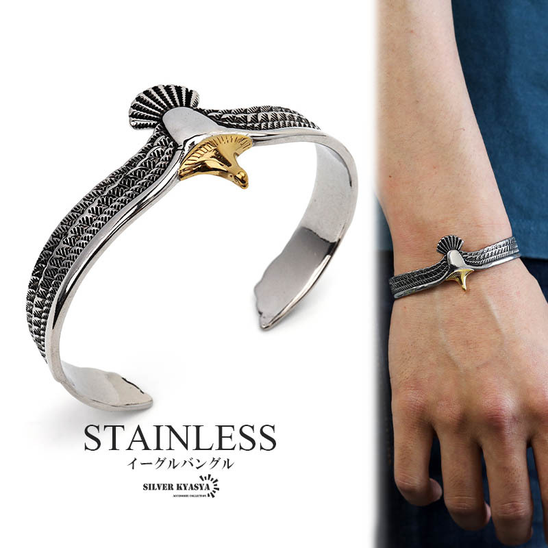 - ステンレス素材 イーグルバングル メンズバングル フェザーバングル ブレスレット シルバー ネイティブ インディアン