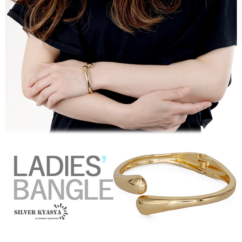 - シンプルバングル ドロップ ニュアンスバングル ミニマム 細身 ぷっくり ゴールド 開閉式 カジュアルバングル 腕輪 レディース
