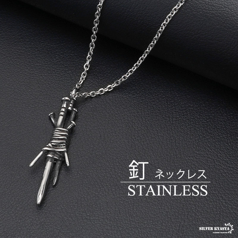 - ステンレス 釘ネックレス 和釘ネックレス シルバー 工業 部品 ビス クギ パンク 小豆チェーン