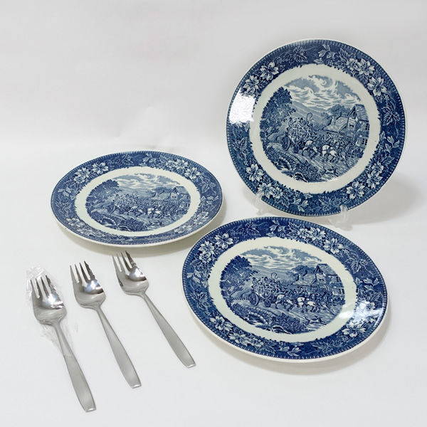 - ★ 万古焼 冨永陶園 洋食器 万古焼 駅馬車 スパゲティ皿・フォーク(3客) (0220513146)