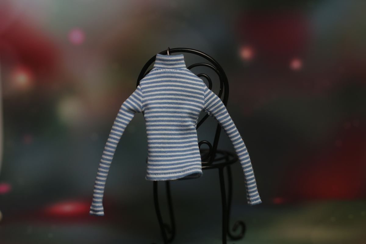 - 人形服a52-09(水色ボーダー)ハイネック長袖Tシャツ細身momokoジェニー用