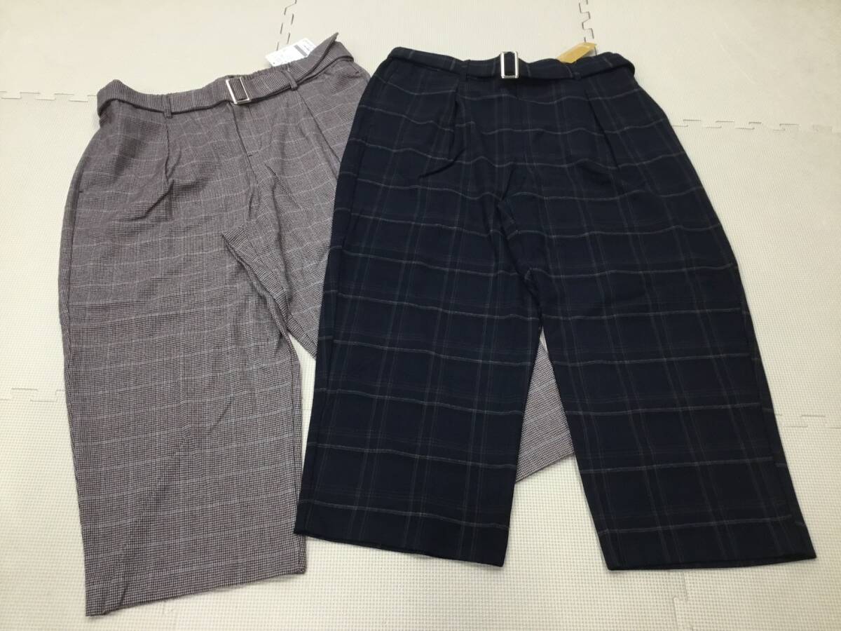 - S682 新品【BELLUNA】レディース パンツ 4L 2枚/ウール調ストレッチ テーパードパンツ/ネイビー系チェック/ガンクラブ/大きいサイズ