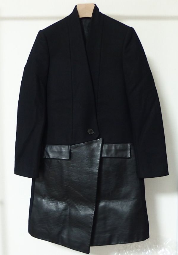 > Neil Barrett ニールバレット MASCULINE FIT レザー切替 メルトン ウール チェスター コート 36