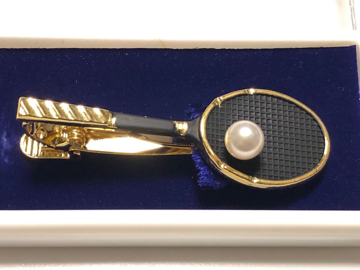- シェルパール 11.0g テニスラケット&ボール タイピン 未使用 美品 ケース付属【検/真珠】S