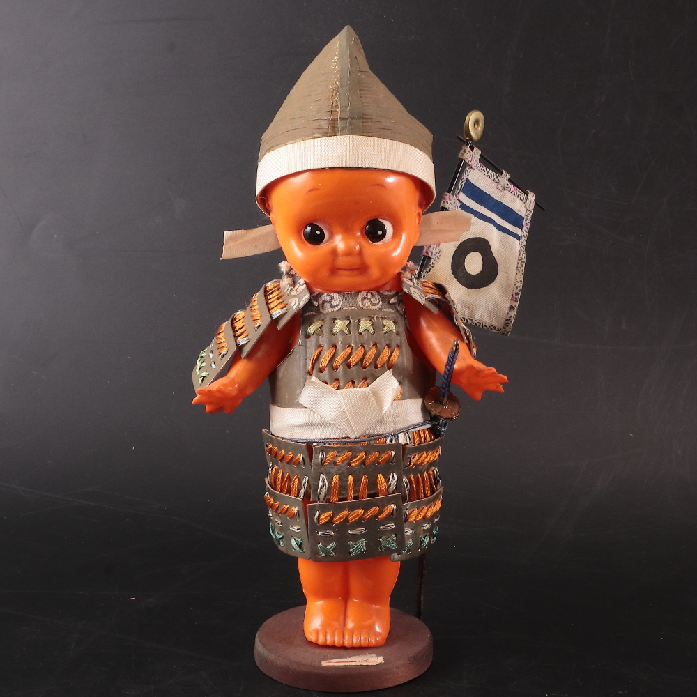 - ◆◇ビンテージ セルロイド製キューピー 甲冑姿 オレンジ肌 昭和レトロ 玩具 人形 武者◇◆