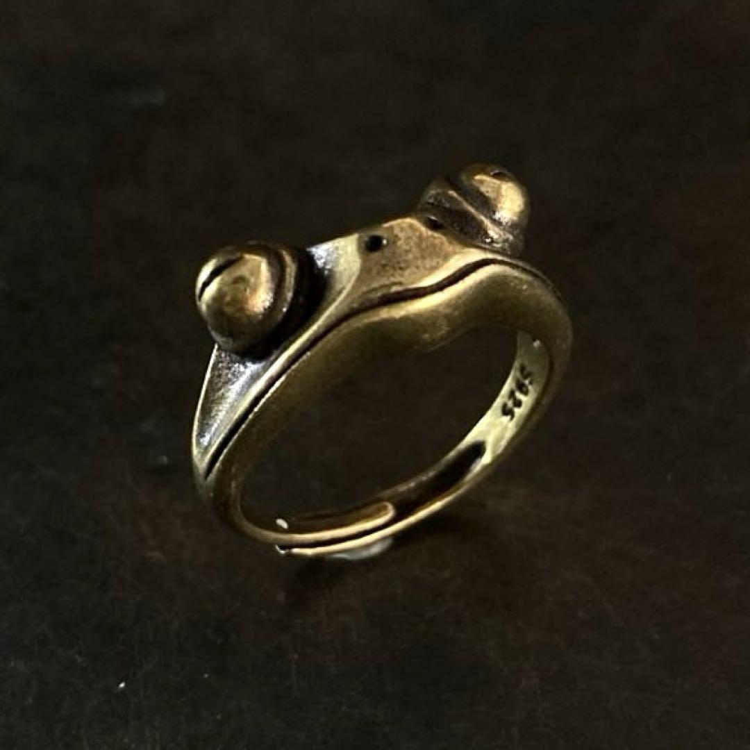 > 307 真鍮 指輪 リング 12号 ビンテージ レトロ アンティーク ヴィンテージ 真鍮製 アクセサリー ハンドメイド 金色 カエル フリーサイズ