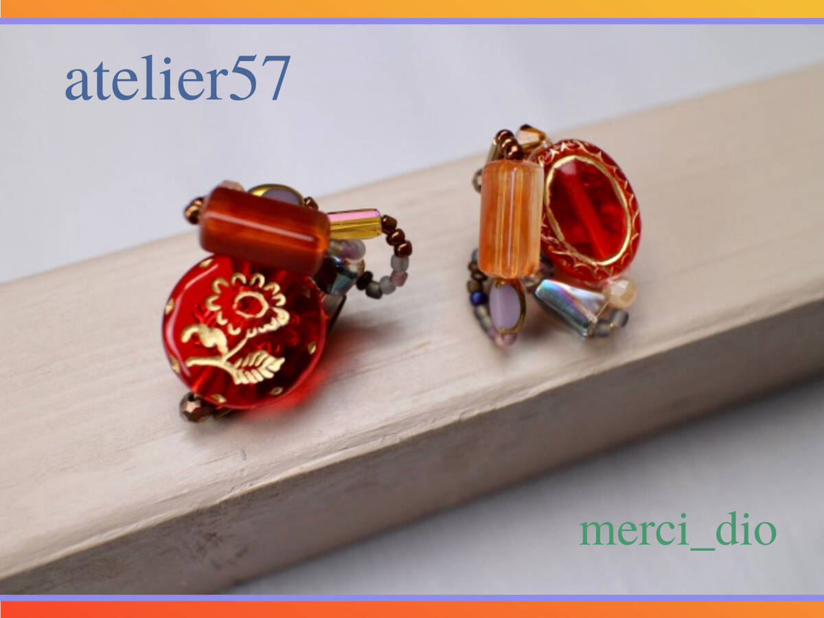 - *atelier57*PARIS アンティークパーツ 18k スタッドピアス ガラス レッド チェコビーズ フラワー アシンメトリー 新品 ドゥーズィエム